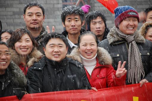加油声、欢呼声从雅静的八十院一阵阵传出,显示了八十院缔造者健康昂扬的工作状态。发奖的时候,天空飘起了美丽的白雪,洁白的雪花飘在大家的喜悦的脸上、黑色的发间,却没有带来任何的寒意,是热情和欢乐驱走了寒冷。