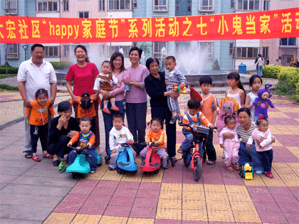 6月2日,大宏世纪新城一派热闹景象,这里正在举办首届大宏社区“HAPPY家庭节”“小鬼当家”活动。一位位小朋友将自己家中的玩具、文具、小人书等都拿到活动现场,与前来询价、观看的小朋友一起分享交易的快乐。